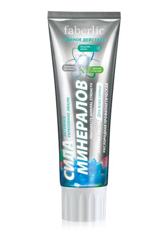Кислородная профилактическая зубная паста «Сила минералов» на основе биоактивного кальция способствует реминерализации и укреплению эмали зубов.