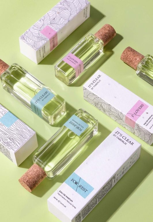 It's Clear — это экологично! Колпачки сделаны из пробкового дуба, кора которого самовосстанавливается без вреда для растения. Крышечки и флакон, снабжённый специальным откручивающимся пульверизатором, подлежат повторной переработке. В пеналы парфюмов мы заключили живые семена растений, которые могут прорасти в земле. А выбросы CO2 при производстве флаконов It's Clear сократились на 70%.
